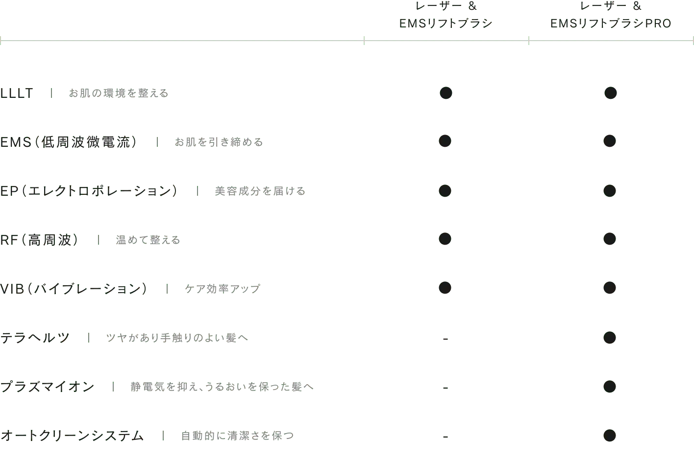 | 美髪機能 | スタンダードモデル | PROモデル |